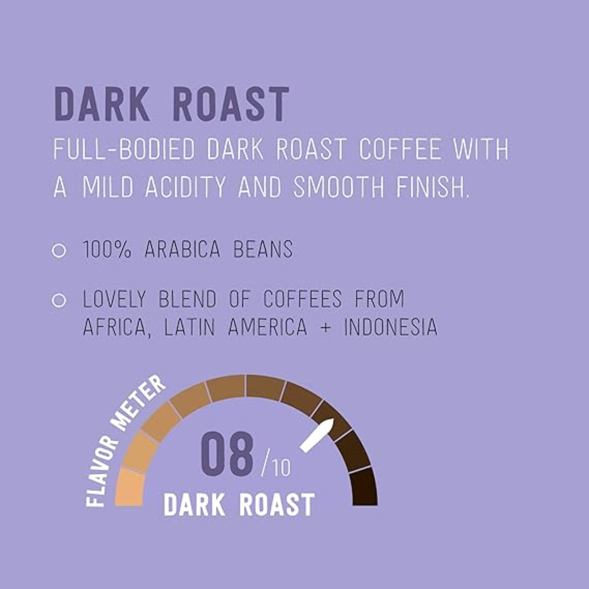 Happy Belly Dark Roast coffee k-cup pods are made with 100% Arabica beans and have a full, bold flavor. Compatible with 1.0 and 2.0 k-cup brewers, make your cup to order with Happy Belly coffee pods.