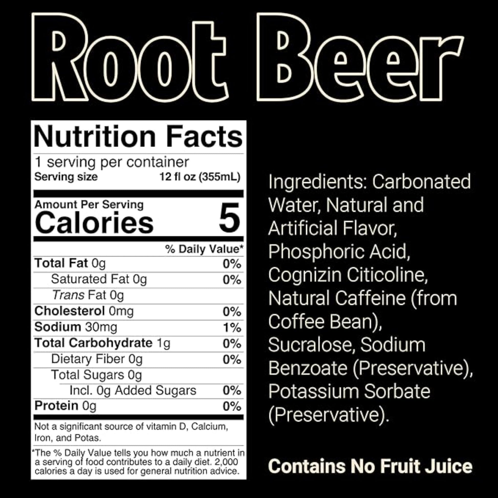 BUM Sugar-Free Energy Drink, Root Beer - Lightly Carbonated & No Artificial Colors, Natural Caffeine & Citicoline for Energy & Focus, Brain Boost & Workout Sports Beverage - 12 oz, Pack of 12