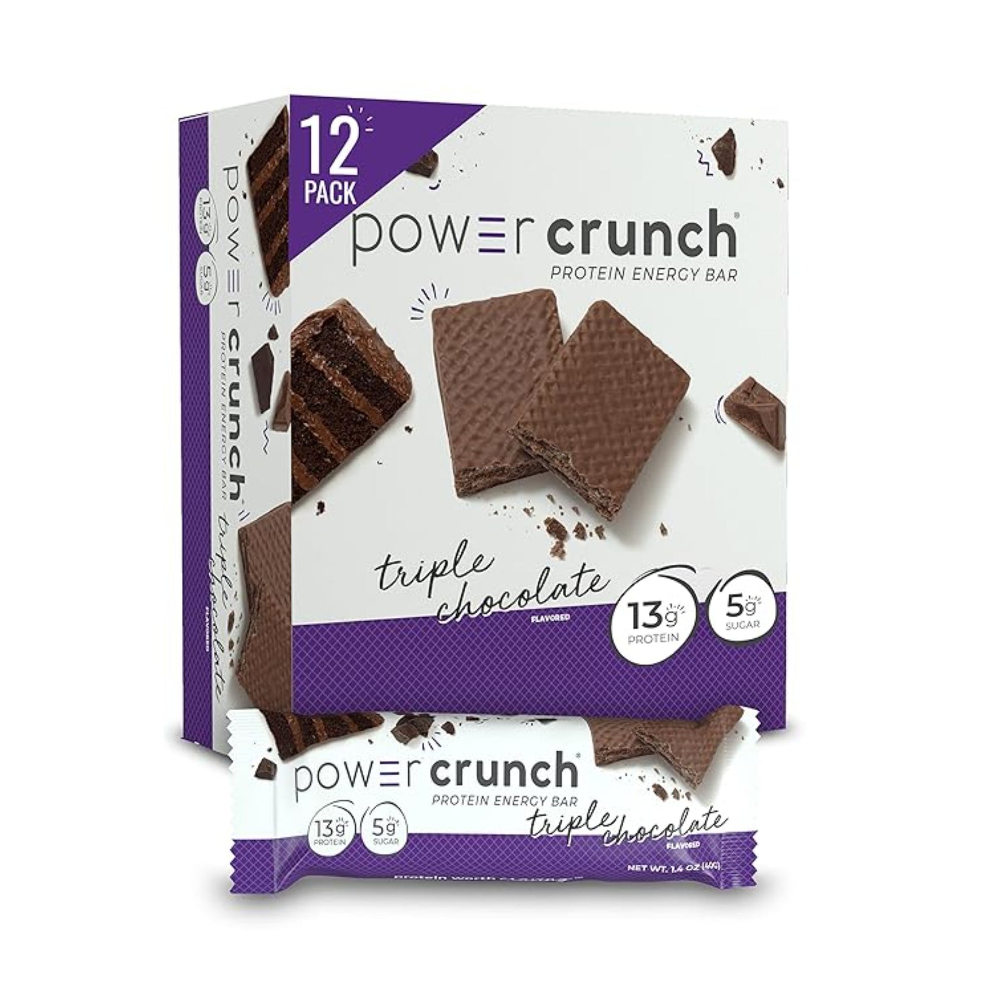 Power Crunch Protein Wafer Bars, High Protein Snacks with Delicious Taste, Triple Chocolate, 1.4 Ounce (12 Count)