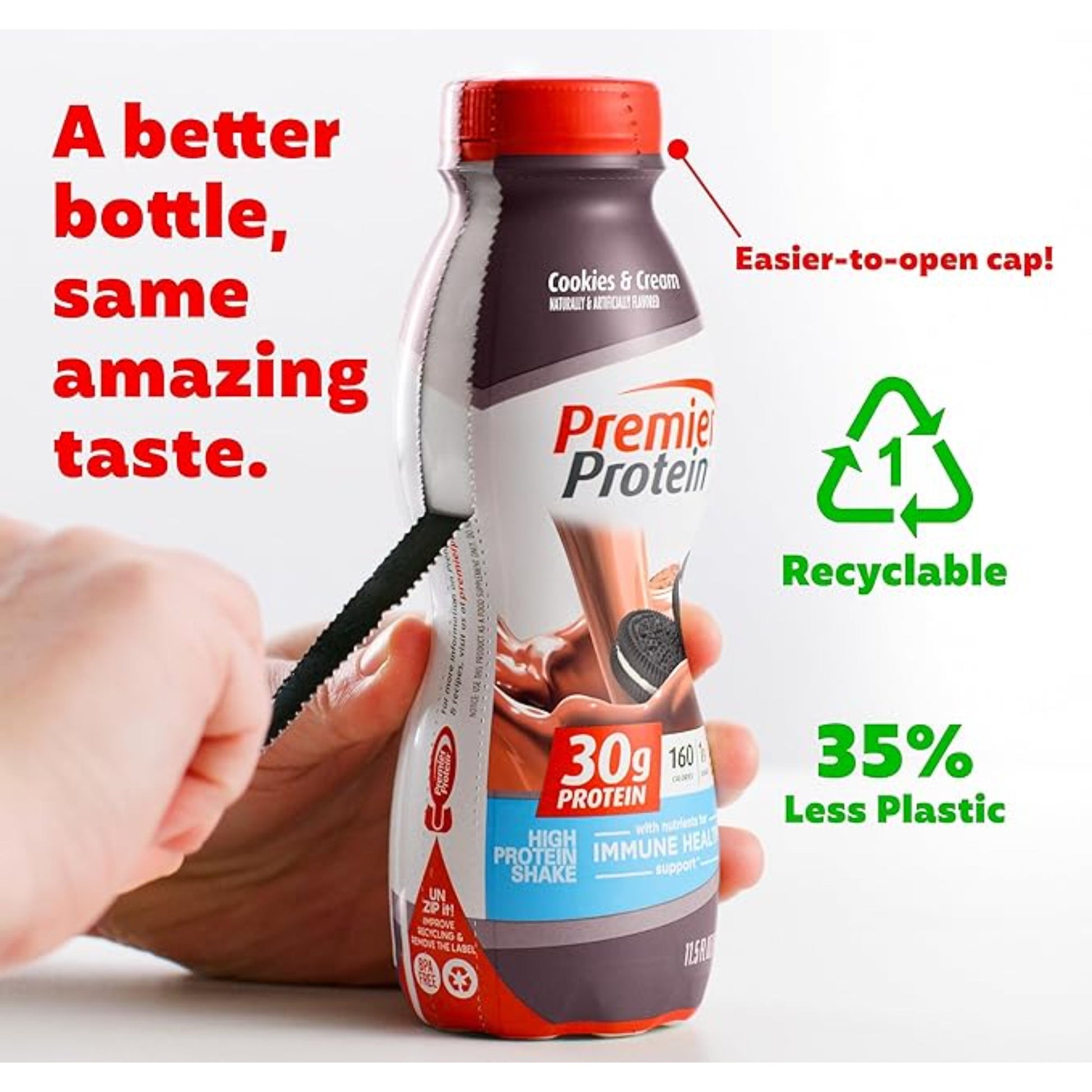 Premier Protein Shake, Cookies & Cream, 30g Protein, 1g Sugar, 24 Vitamins & Minerals, Nutrients to Support Immune Health 11.5 fl oz (12 Pack)